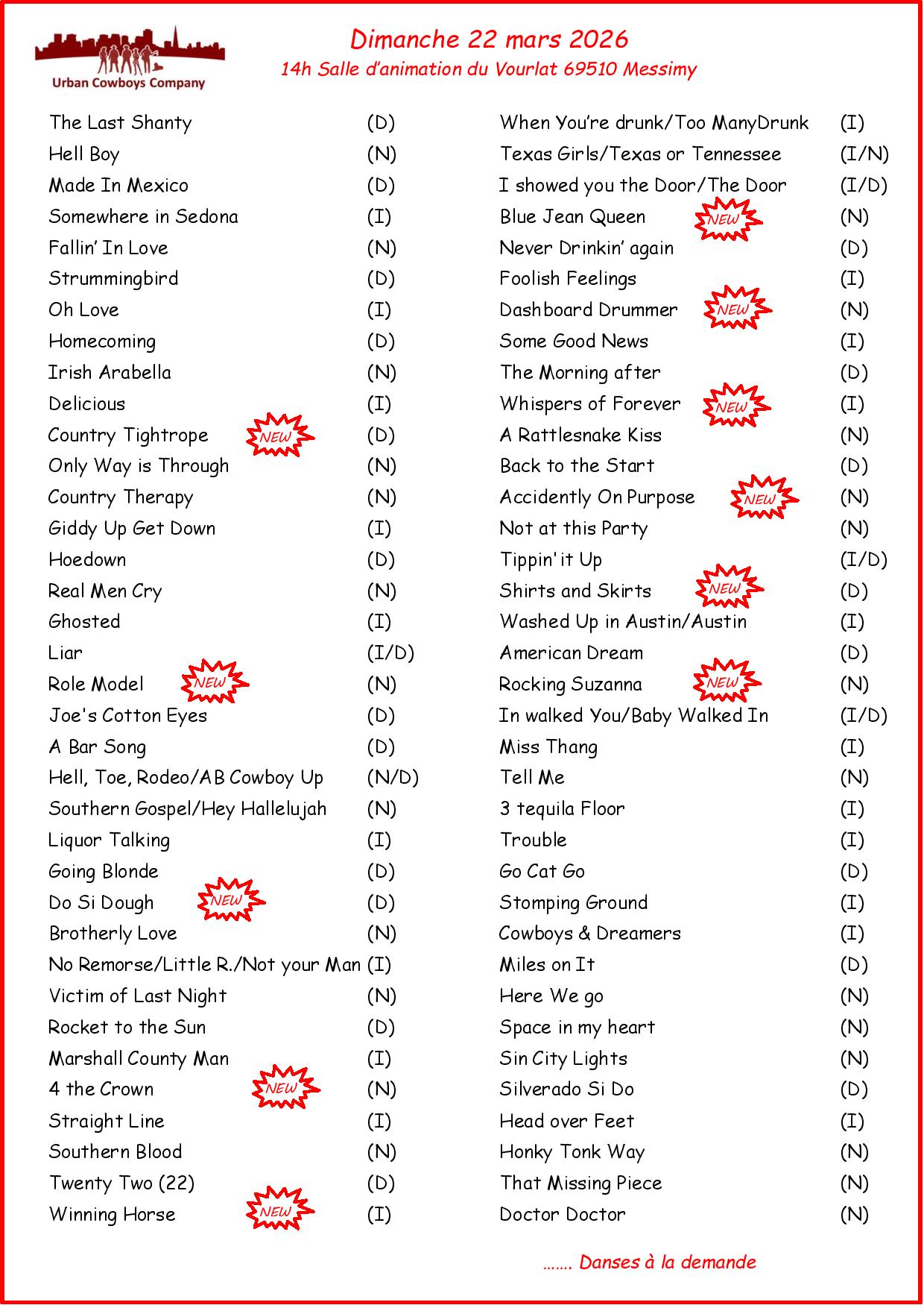 Peu importe, les différents cours proposés sont là pour répondre à vos attentes : 4 cours hebdomadaires de danses sur de la Country Music.